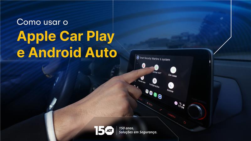 Os clientes ADT com plano Smart Interativo podem acessar e controlar o sistema de alarme diretamente pelo painel multimídia do carro, usando Apple CarPlay ou Android Auto. Isso permite uma experiência mais rápida, prática e segura no dia a dia.